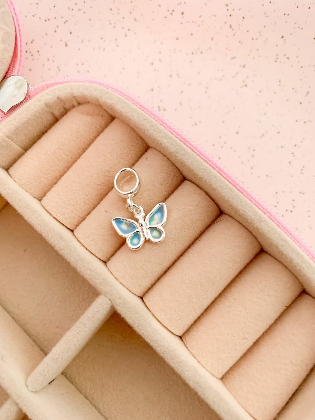 Descubra a delicadeza do nosso berloque borboleta lilás, uma peça única que traz um toque de elegância ao seu conjunto de joias. Feito com banho de prata 925, este berloque é ideal para quem busca qualidade e estilo.