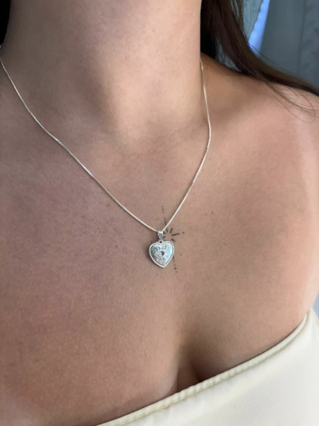 Descubra a proteção e a beleza do nosso Colar Coração Olho Grego, banhado a Prata 925!